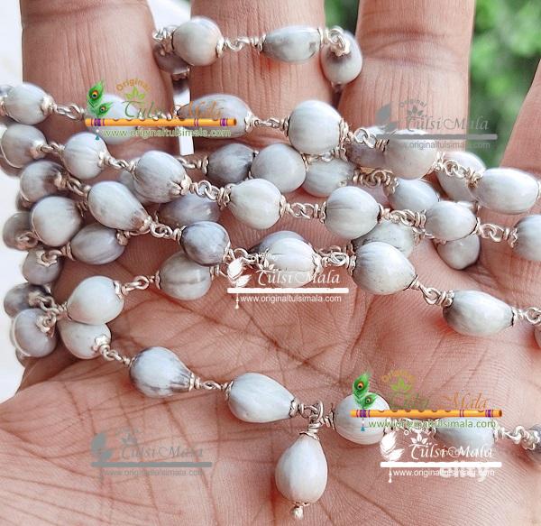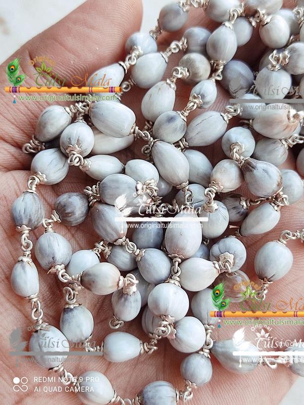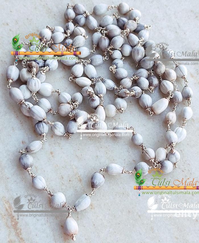 100% Natural Vaijanti Seeds Mala in 108+1 Beads with Silver Capping for Wear and Chanting