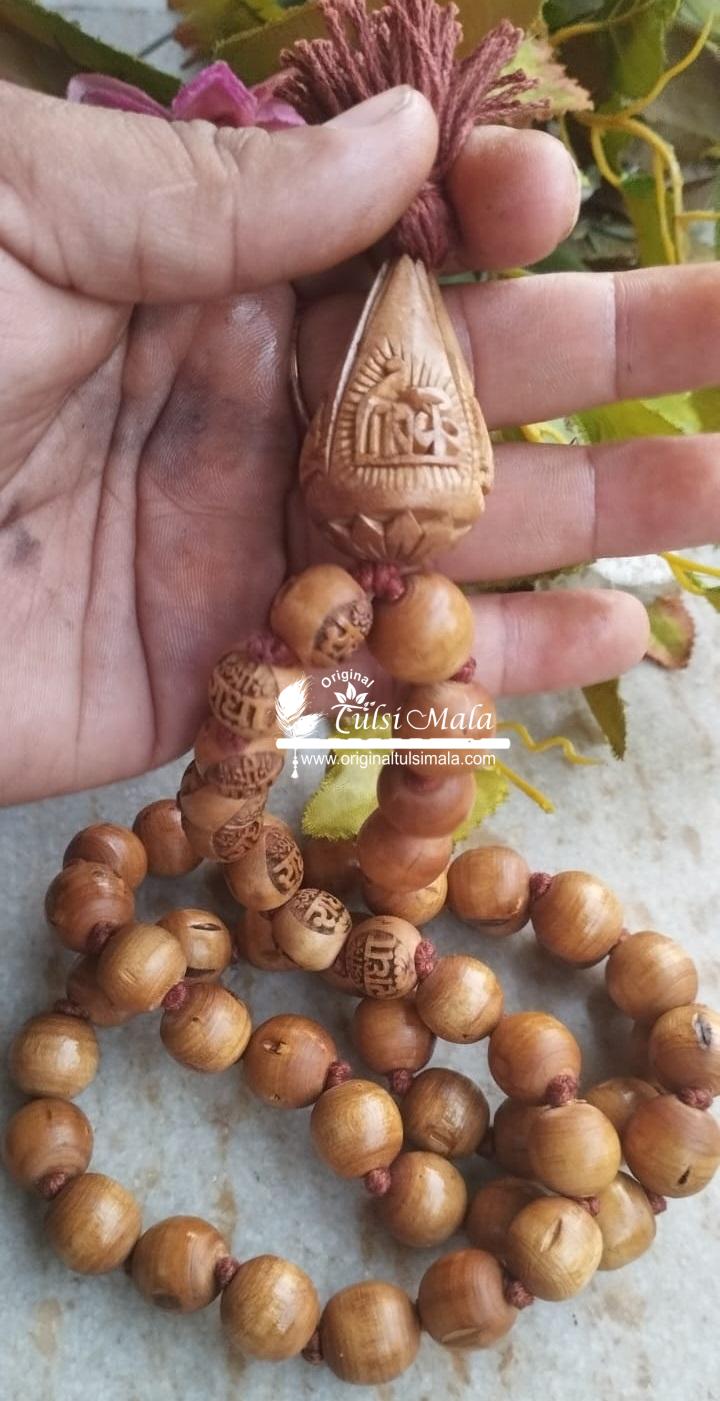 Premium – 54 + 1 Beads Pure Tulsi Japa Mala With Radha Krishna Carved Lotus Guru Bread