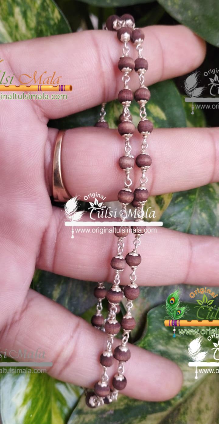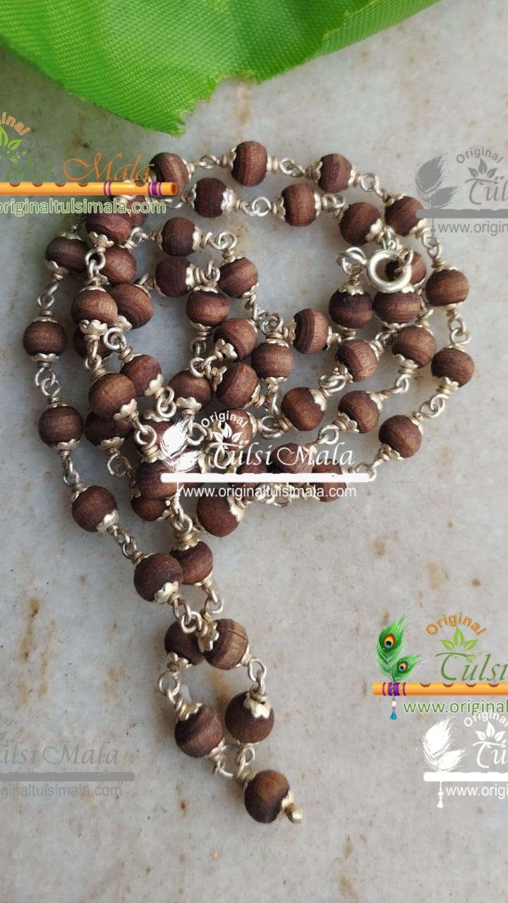 54+1 Silver Flower Capped Shayma Tulsi Beads Neck Mala