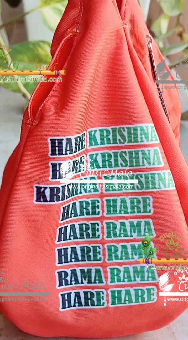 Shri Banke Bihari Ji With Cow Design Orange Color Japa Jholi Bead Bag