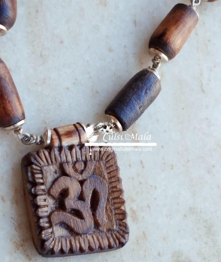 Cylindrical shaped silver capped tulsi beads japa mala with pretty guru bead like dollar