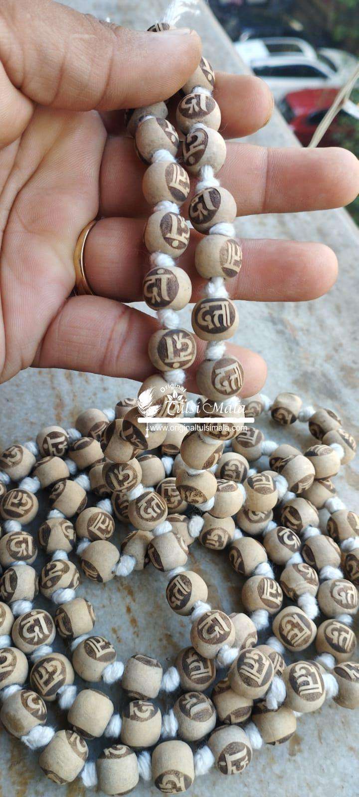 Dram Dataa Carved tulsi beads Japa Mala
