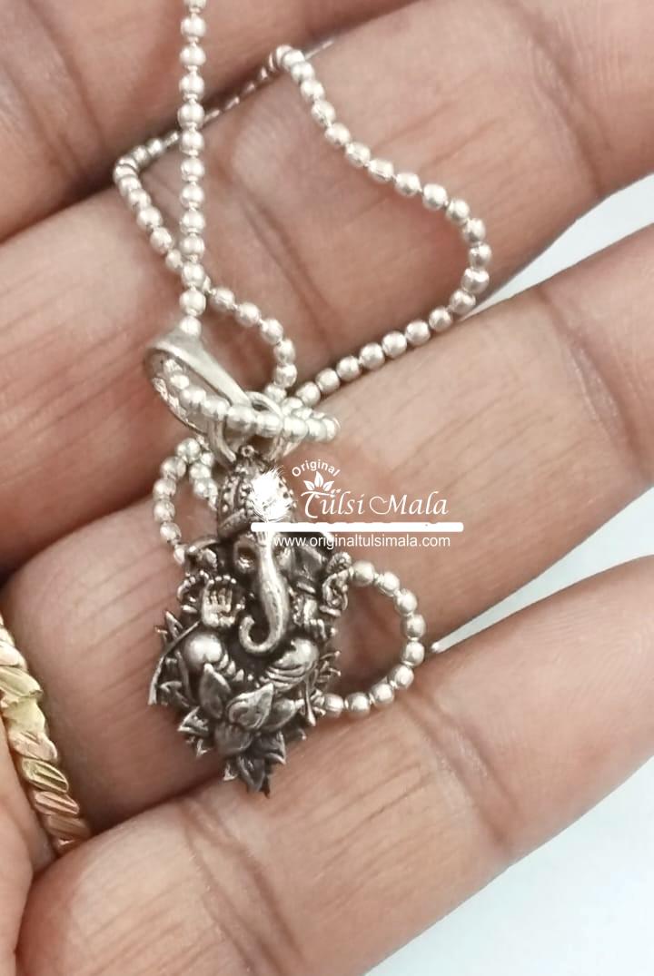 Beautiful Design Ganesh Ji Silver Pendant Mala