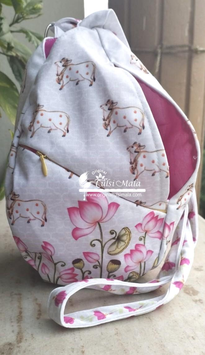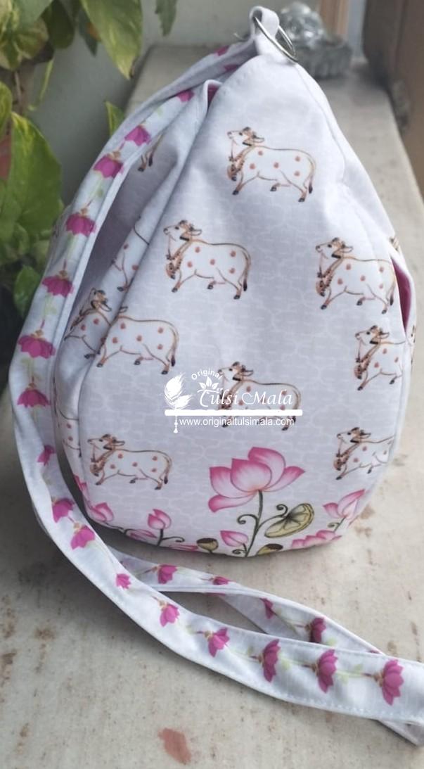 Cow with Lotus Print Designer Prayer Bead Bag /Tulasi Japa Bag