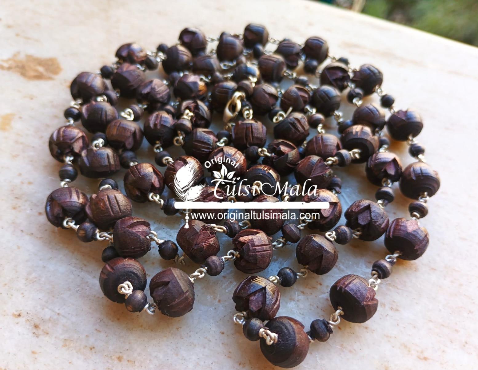 Lotus Tulsi Beads Kanthi Mala in Silver