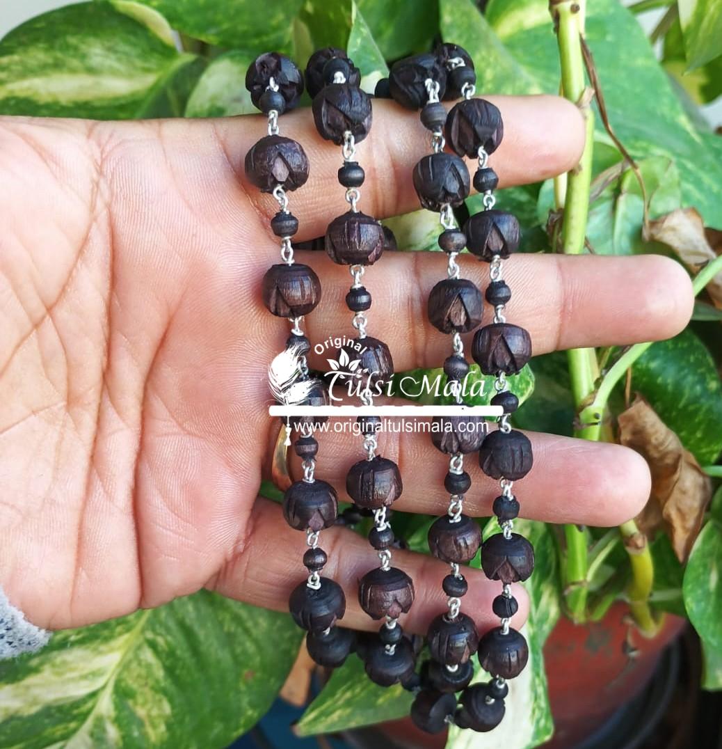 Lotus Tulsi Beads Kanthi Mala in Silver