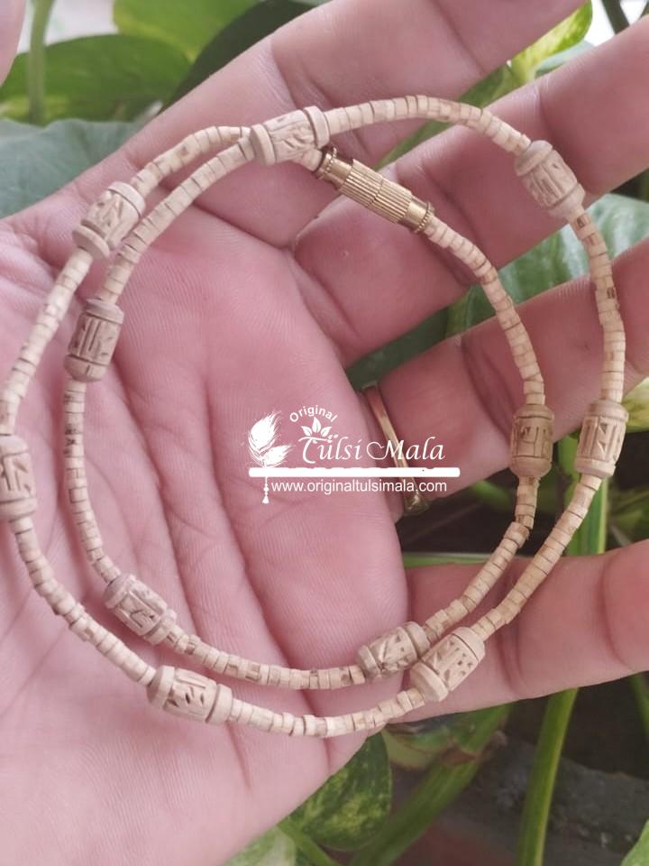 One Round Radha Naam Carved Tulsi Kanthi – Premium
