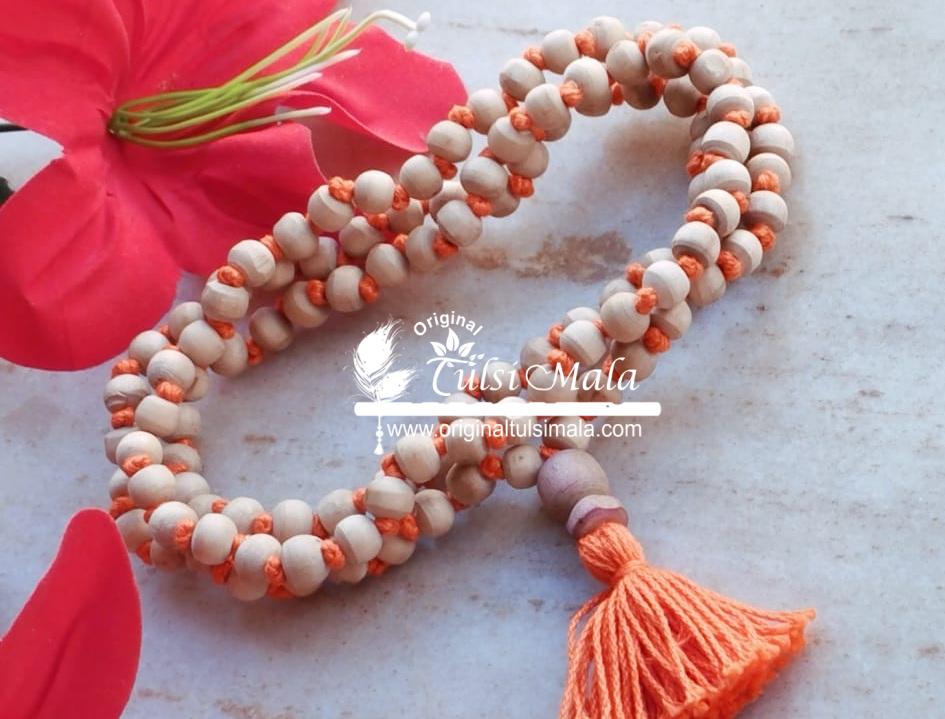 108+1 Original Tulsi Jap Beads Mala with Orange Thread -Fine Quality 8 MM