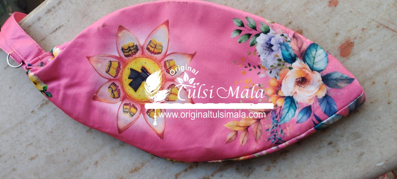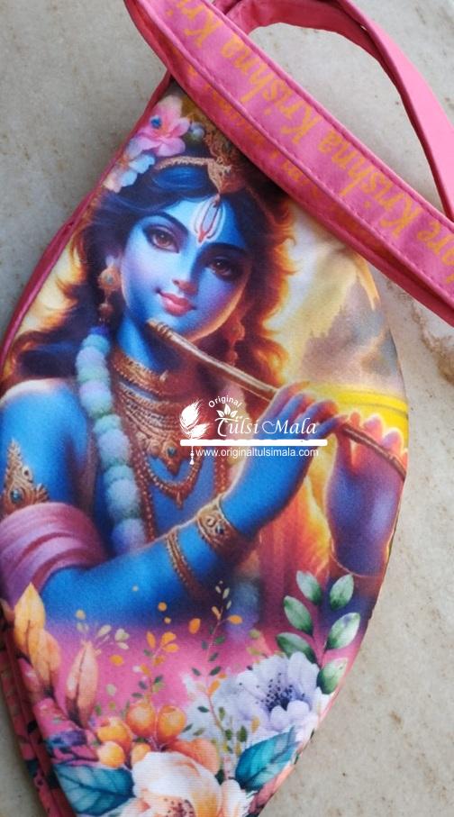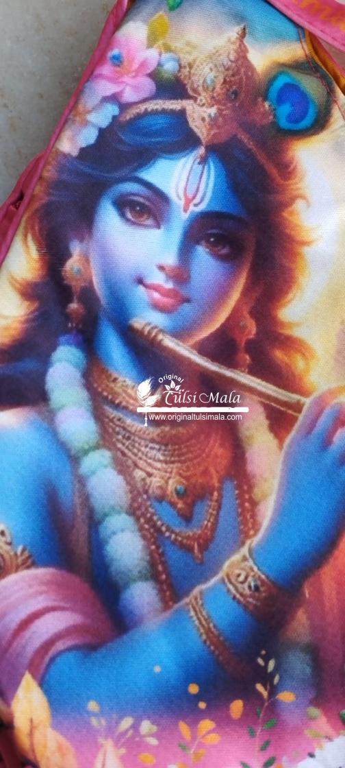Premium Shri Krishna japa bead bag with pocket & loop. High-quality fabric