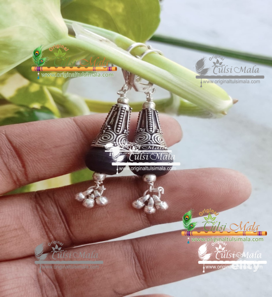 Pure Silver Shyma Black Tulsi Earrings- Antique Design