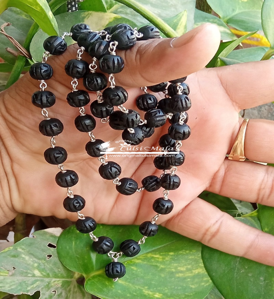 54+1 Radha Carved Silver Shyma Tulsi Beads Mala