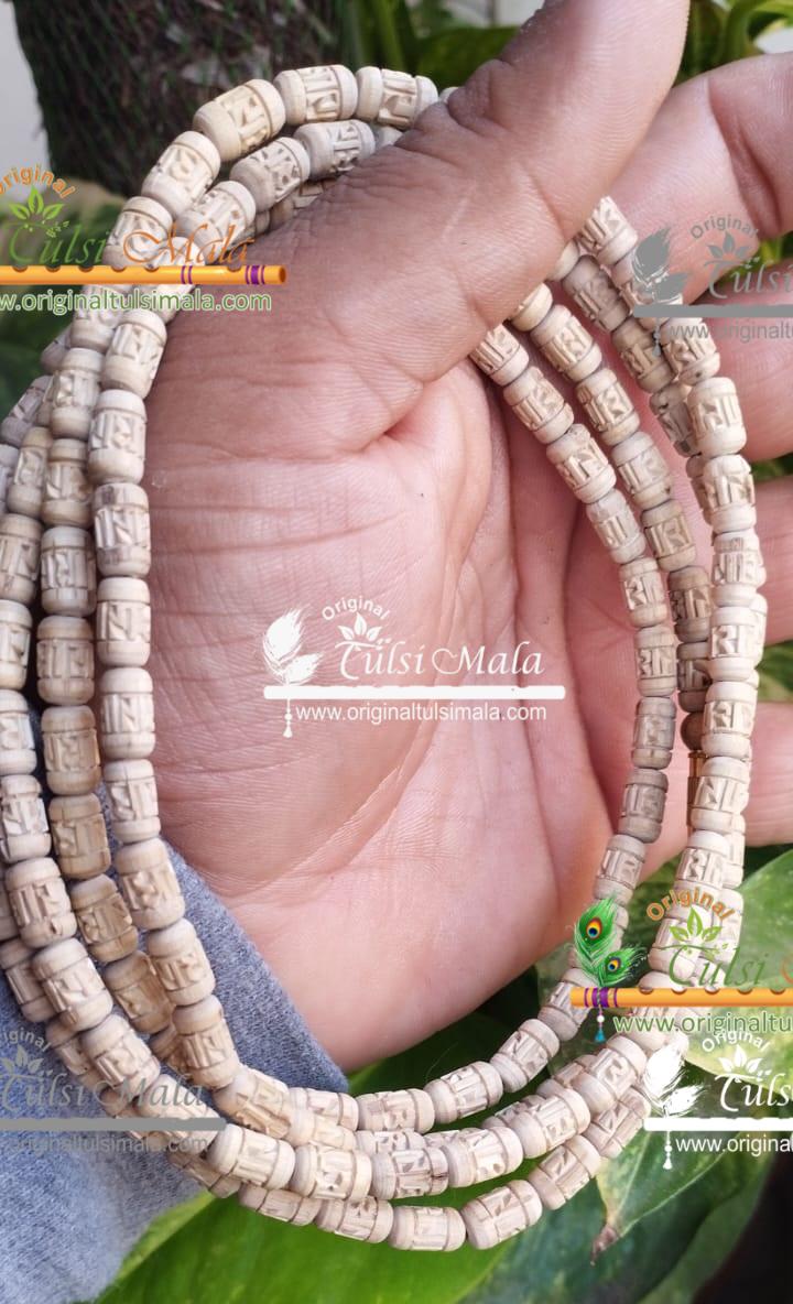 Radha Carved Shyamal Tulsi Barrel Bead Premium Kanthi Mala
