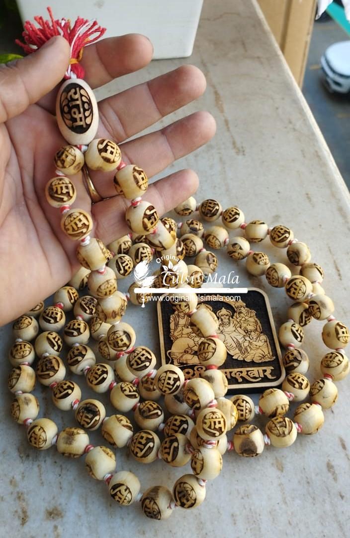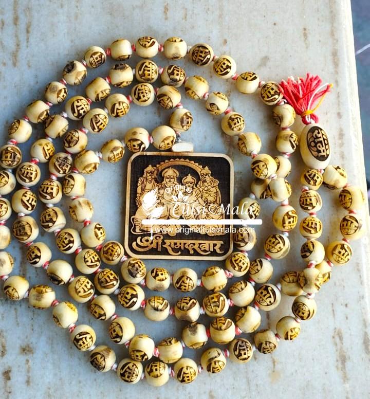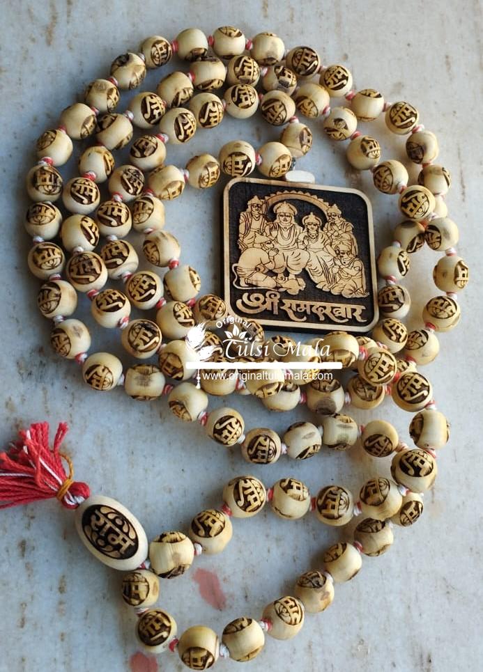 Ram Carved Big Tulsi 108 Beads Japa Mala with Ramdarbar Locket Mala