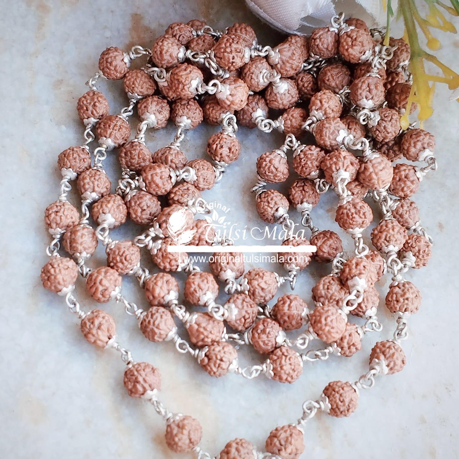 Rudraksha 108 Beads Mala with Silver Caps-Weight