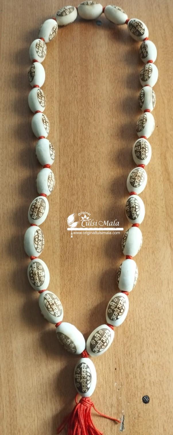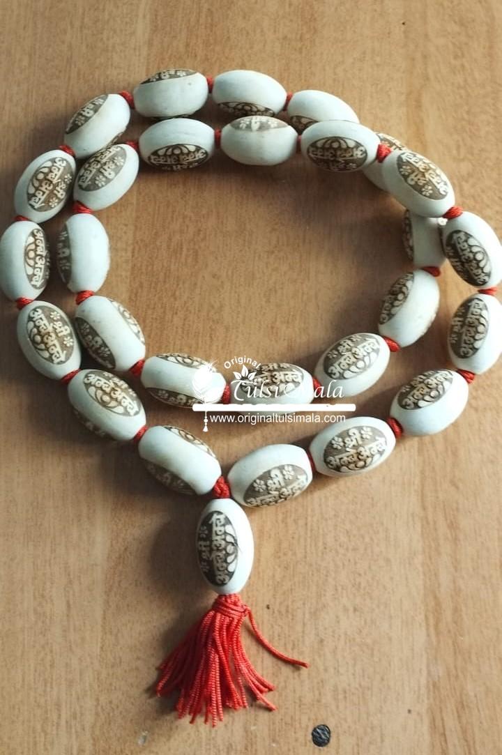 Shri Ambey Naam Caved 27 Beads Pure Tulsi Japa Mala