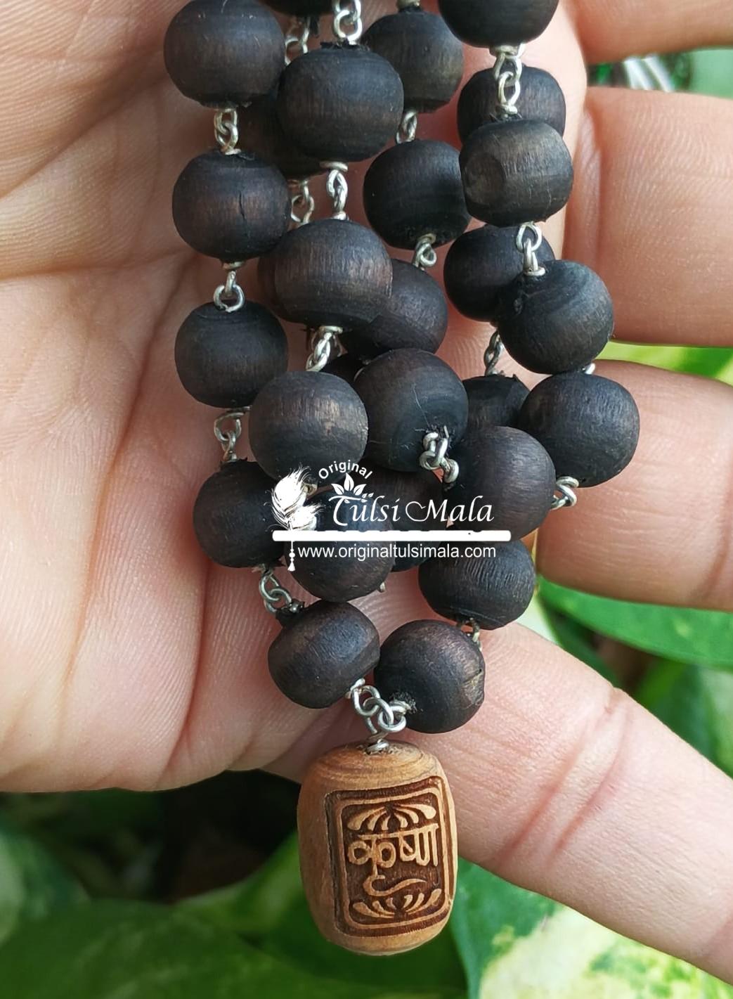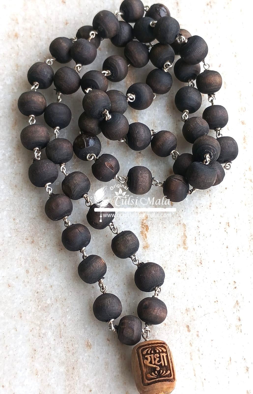 Shyama / Black Beads Silver Mala For Chanting And Wearing