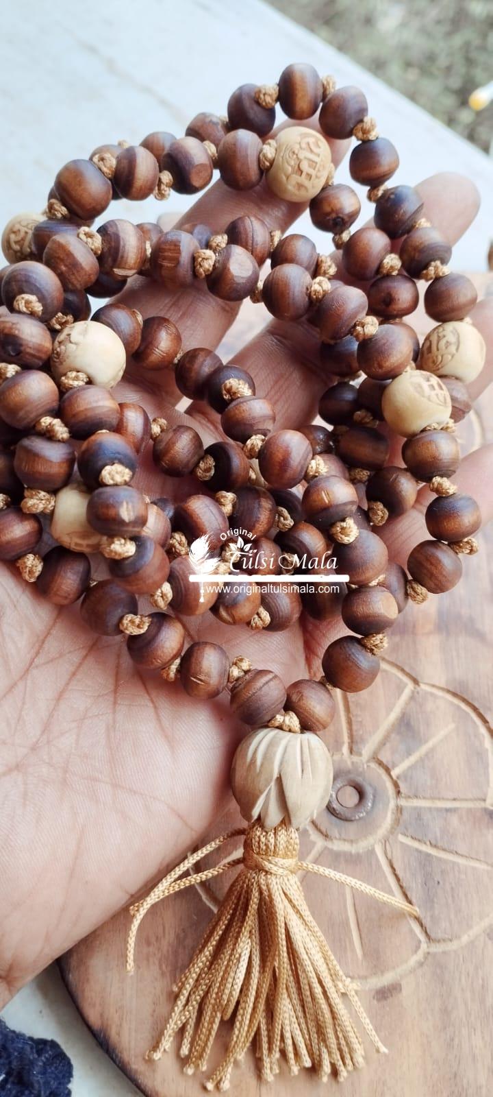 Shyma Tulsi Beads Japa Mala With Goldan Thread- Premium