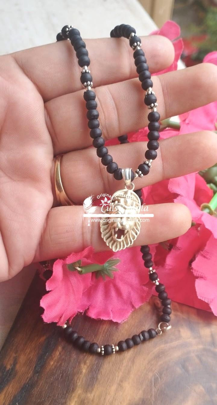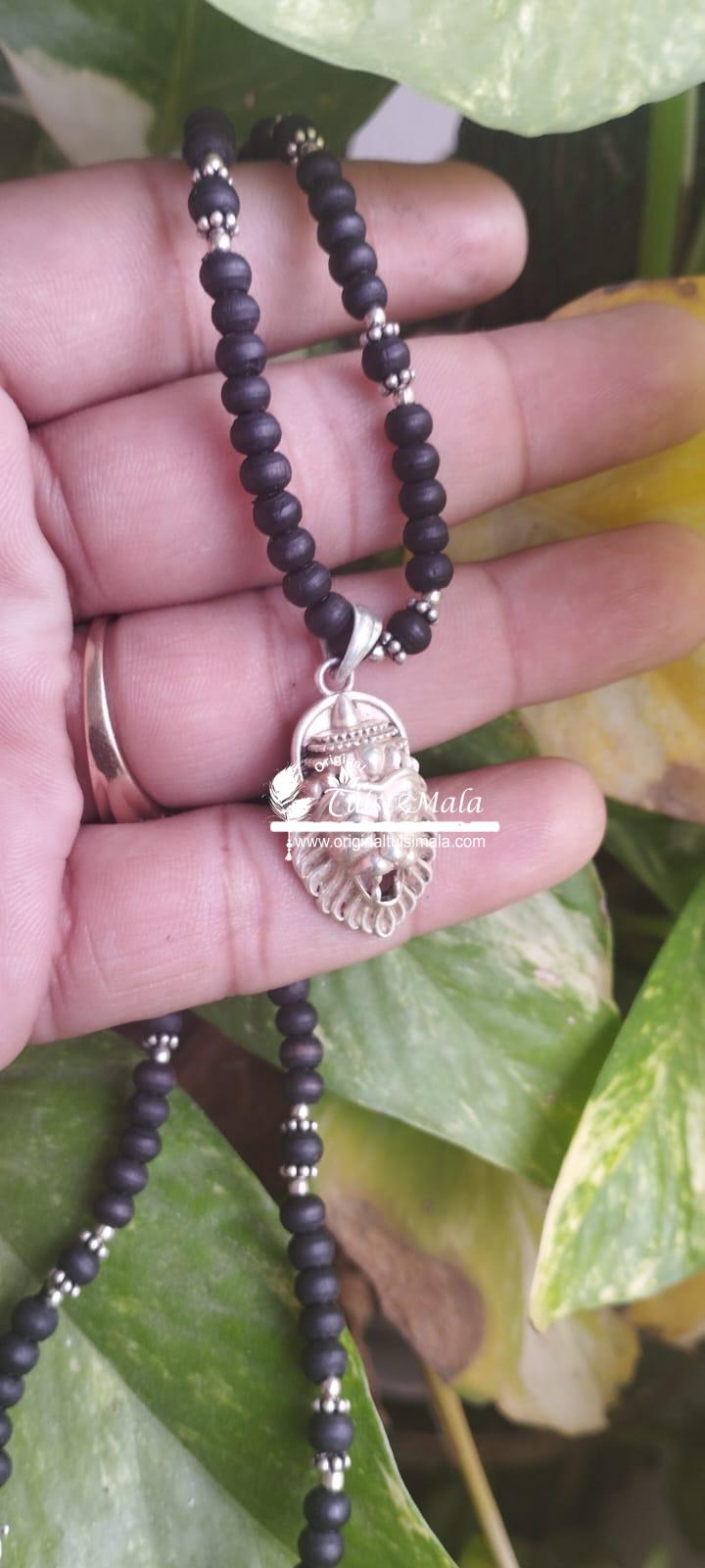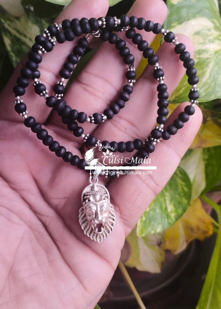 Silver Narasimha Kavach with Black Shyma Original Tulsi and Silver Cap Mala