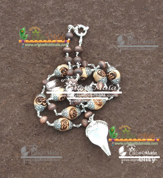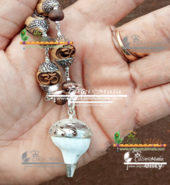 Sterling Silver and attractive Designed Conch/Shank Pendant Om Carved Tulsi Beads – Premium / Classic