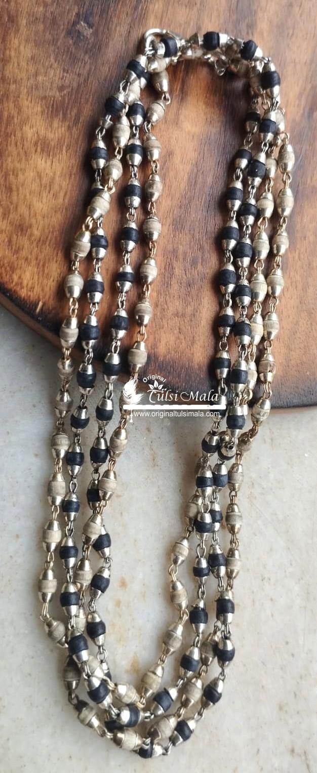 Sterling silver black and White rosary beads with silver cap tulsi mala