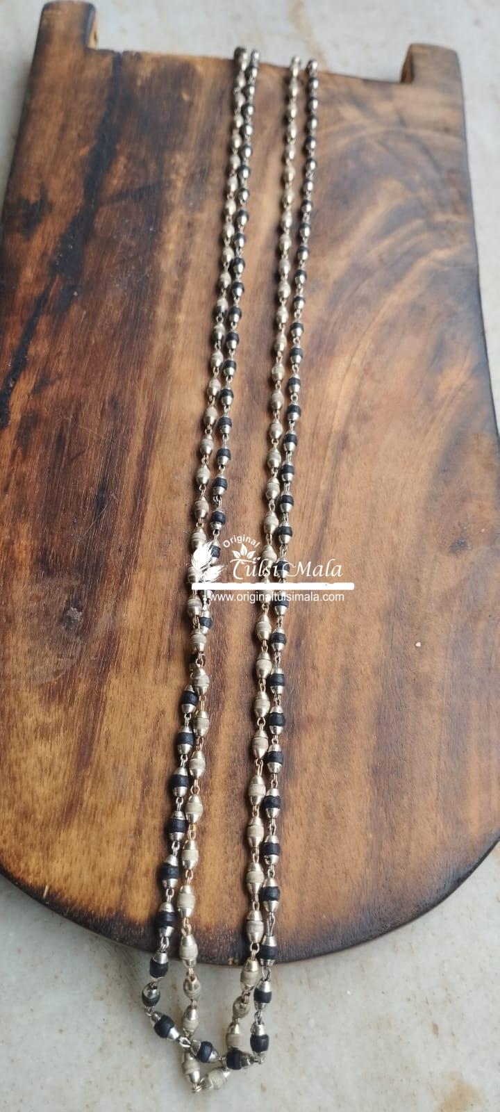 Sterling silver black and White rosary beads with silver cap tulsi mala