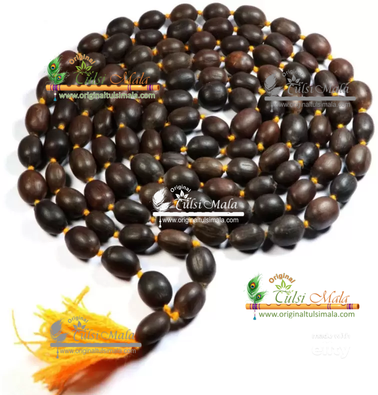 It is made by lotus seeds and one garland contain 108+1 dried lotus seeds.