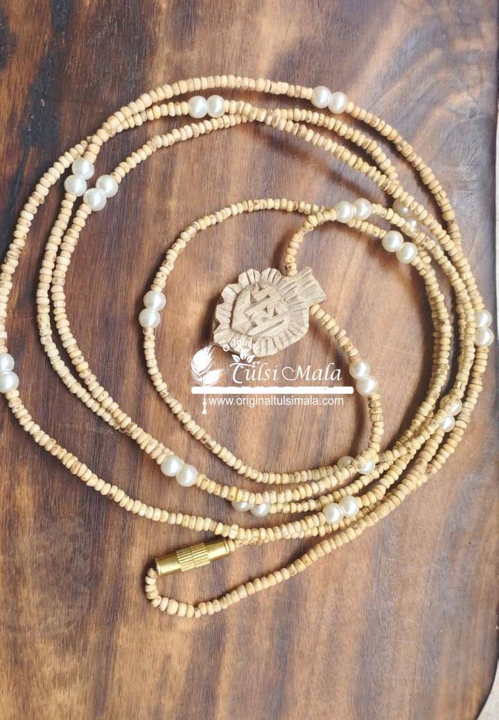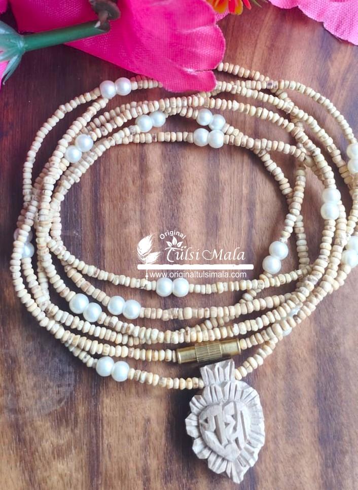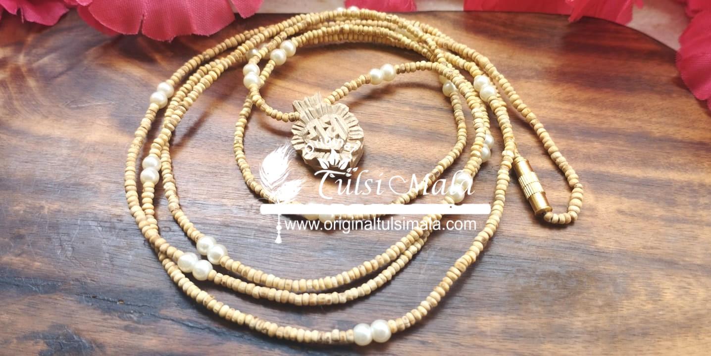 Tiny Tulsi Beads with Radha naam pendant and Pearl Kanthi Mala