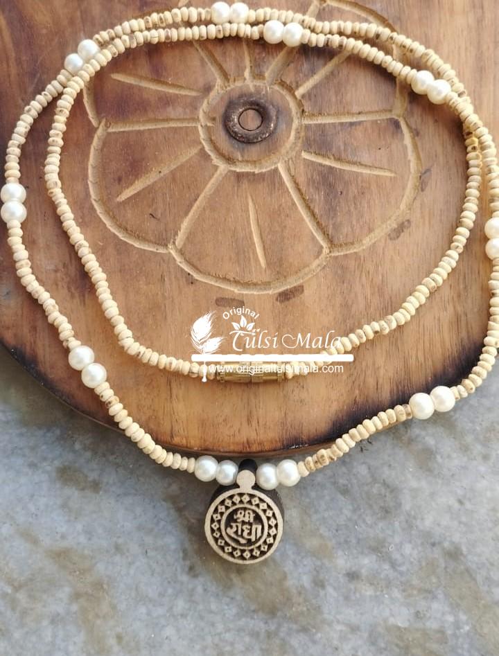 Tiny Tulsi Beads with Radha Carved Naam Small Pendant